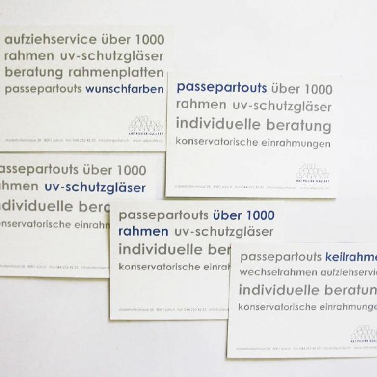 Die Art Poster Gallery am Stadelhofen in Zürich, ist das Fachgeschäft für Einrahmungen, Kunstdrucke, Karten, Ausstellungen und Art Shop. Wenn Sie Ihrem Lieblingsbild einen passenden Rahmen geben wollen, werden Sie von dem fachkundigen Team freundlich und geduldig beraten.